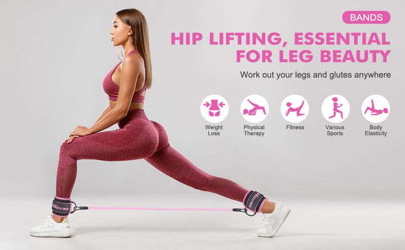 Most effective leg and butt workout ankle bands to have shapely legs and a firm butt. Ankle resistance bands with cuffs and tube works the glutes and legs, whether it's back kicks, lunges, or donkey kicks, it helps to perfect the butt and legs. It's the perfect alternative to butt workout equipment for any occasion to create a rounder, toned butt. Leg resistance bands are specially designed for leg workouts, making workouts more comfortable and effective, turn it on, feel the burning sensation, and shape the butt and legs you've always dreamed of! Make the most of every free moment and strive to create the perfect body so you can feel confident about your appearance. Whether you're at the beach, out with friends, or at the gym, everyone will envy your slim figure and tight butt!